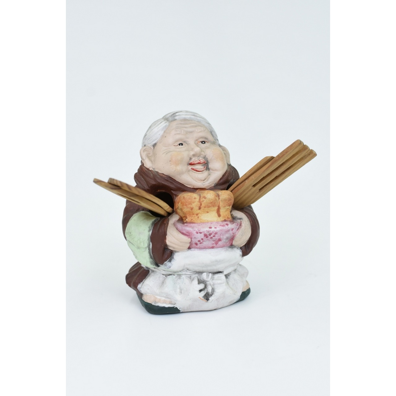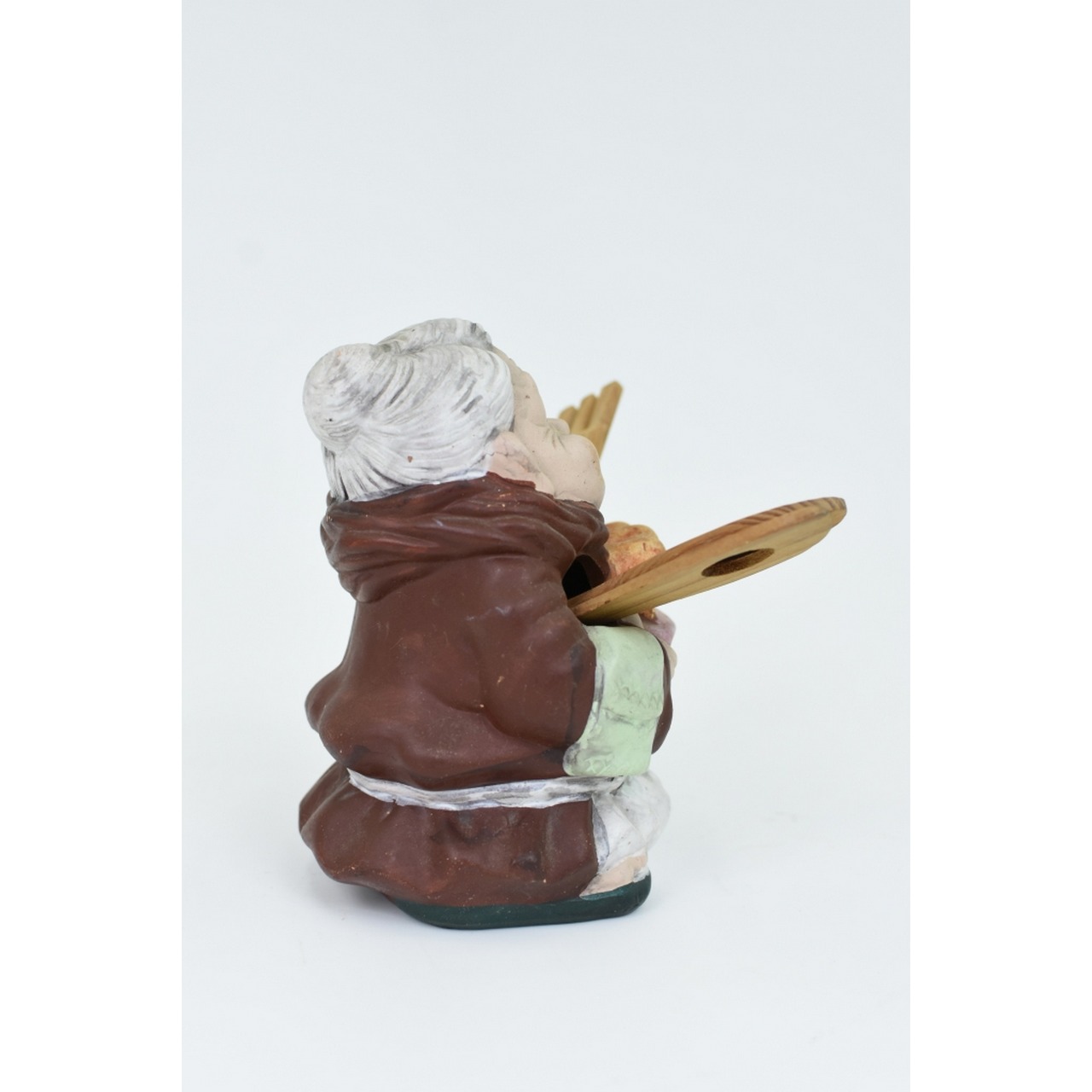 Estatueta fainça com Utensilios Cozinha em madeira
