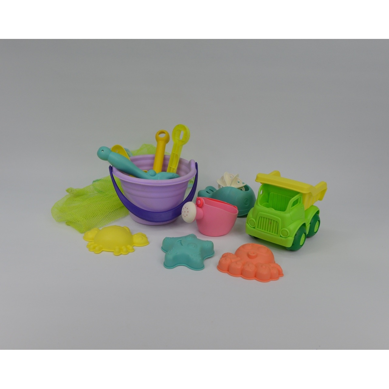 Saco com brinquedos de praia para criança em plástico