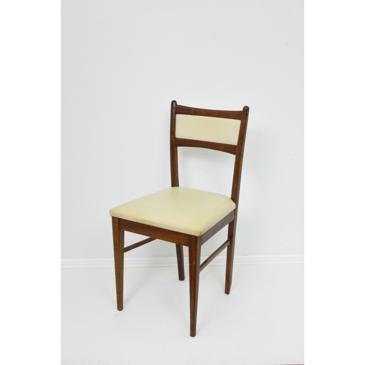 Par de cadeiras vintage em madeira, com estofo em pele sintética