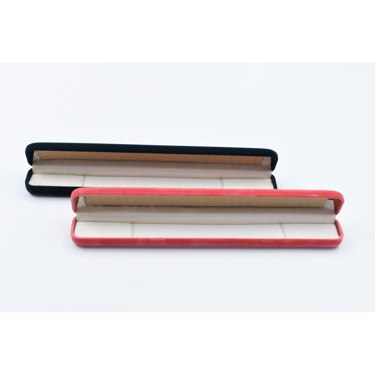 6 Estojos para pulseira em estado novo, 2 na cor azul e 4 na cor rosa.