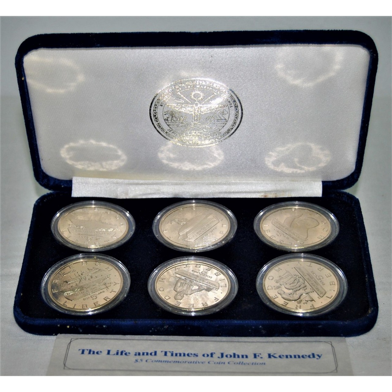 A vida e os tempos de John F. Kennedy: Coleção de moedas comemorativas de 5$ (The Life and Times of John F. Kennedy: 5$ Commemorative coin collection). Moedas diversas. Origem: República das Ilhas Marshall, 1995.