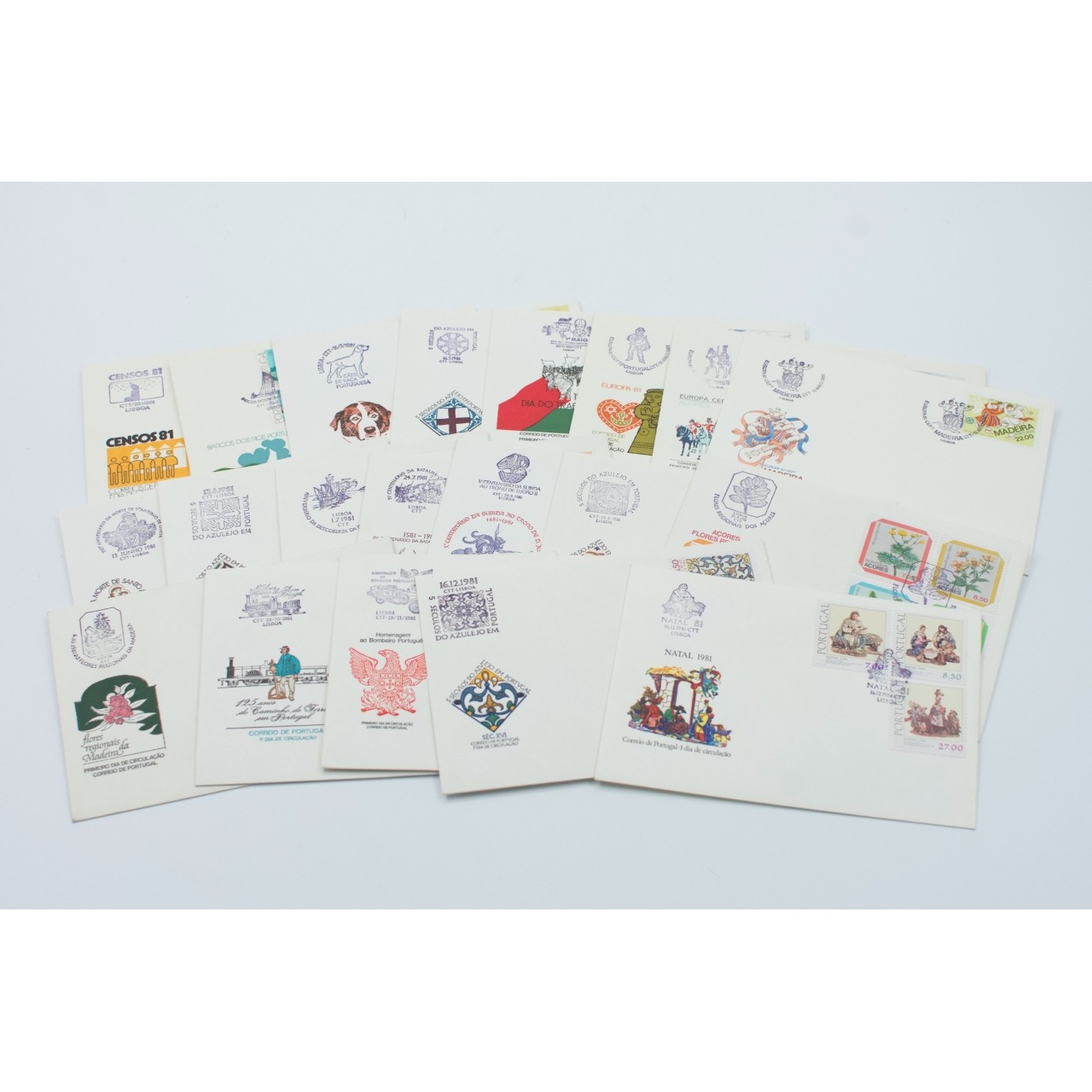 Coleção de 19 sobrescritos FDC, respetivos selos virgens e pagelas emitidos pelos CTT, relativamente ao ano de 2003, em excelentos condições e apresentados em album próprio. Valor aproximado do catálogo 200 €