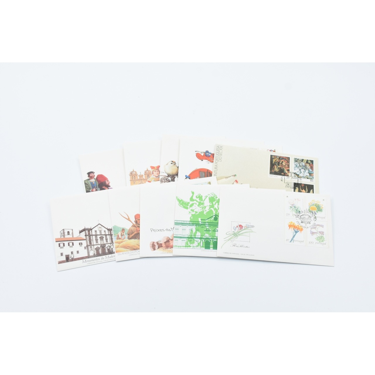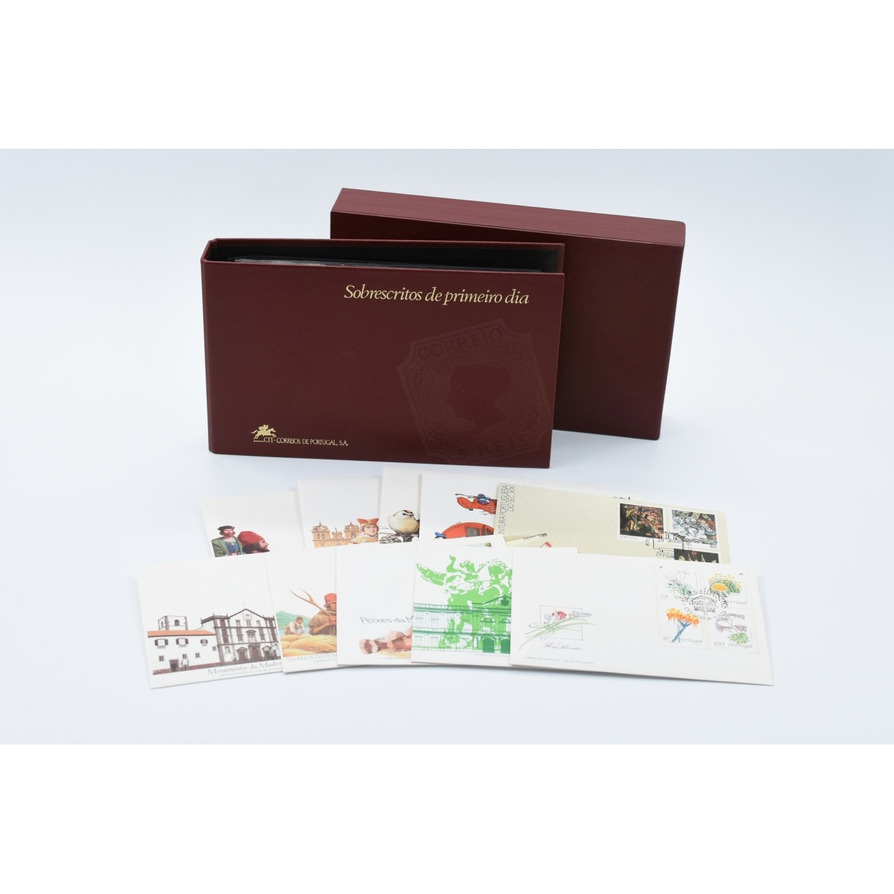 Coleção de 18 sobrescritos FDC, selos e pagelas emitidos pelos CTT, relativamente ao ano de 1989 em excelentos condições e apresentados em album próprio. Valor aproximado do catálogo 200 €.