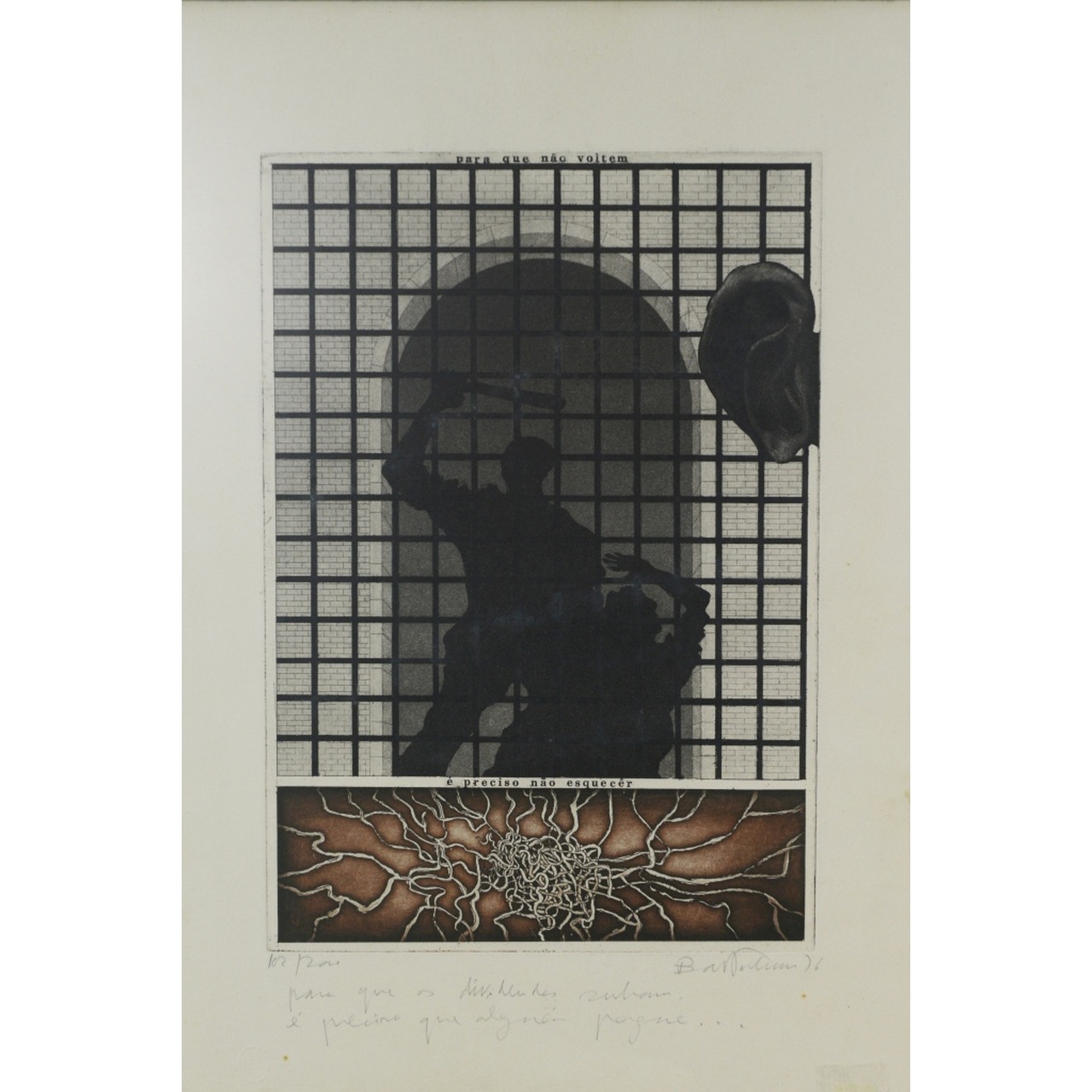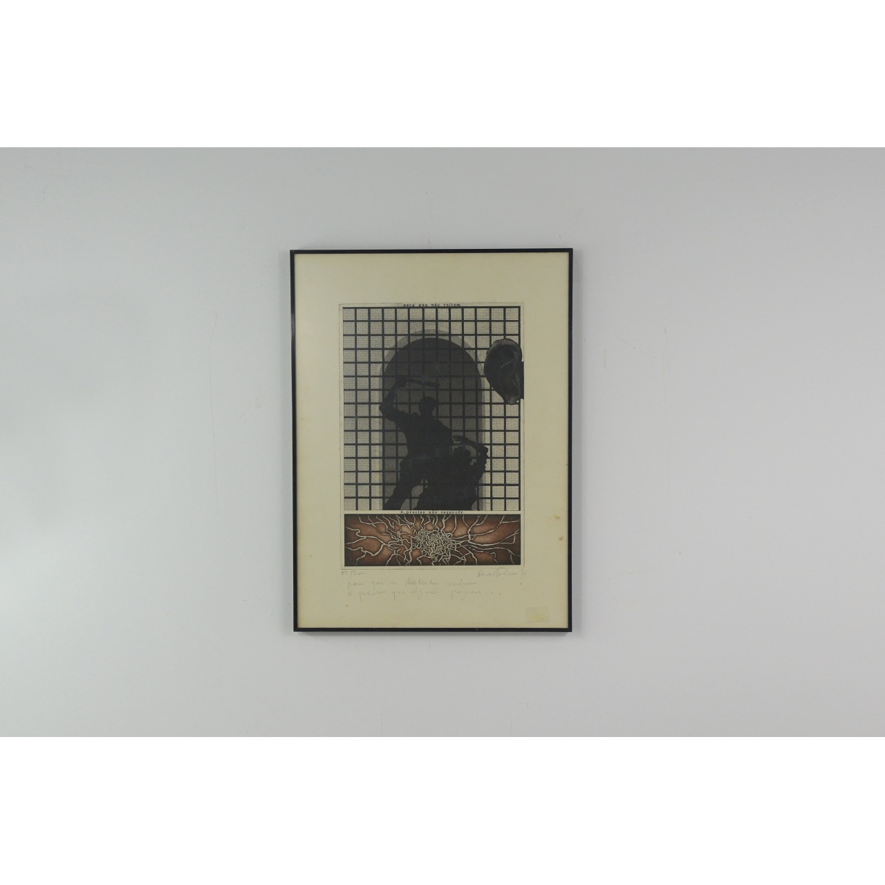 Quadro com ilustração em papel da obra "Para que não voltem é preciso não esquecer". Bartolomeu dos Santos. Moldura em metal preto e vidro.