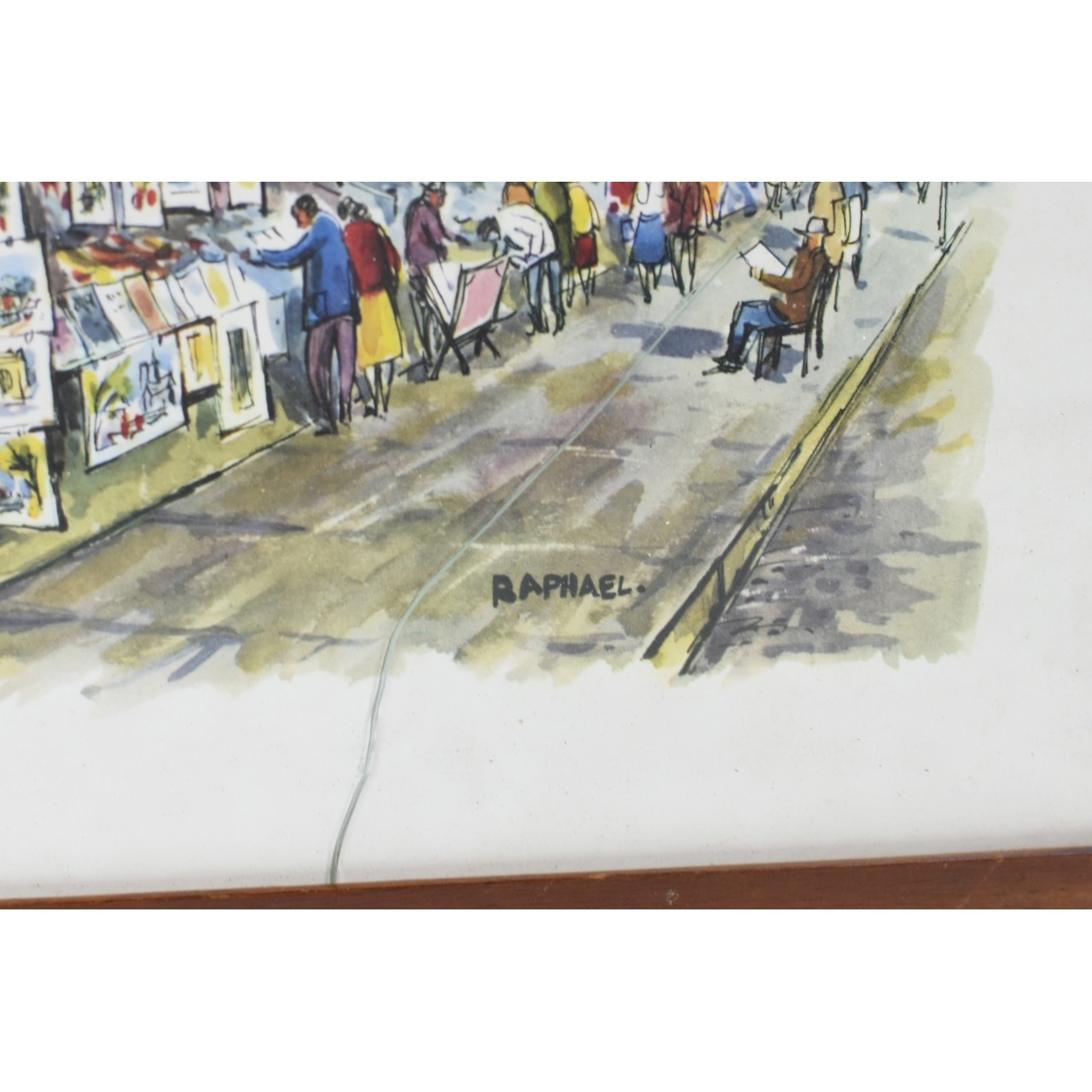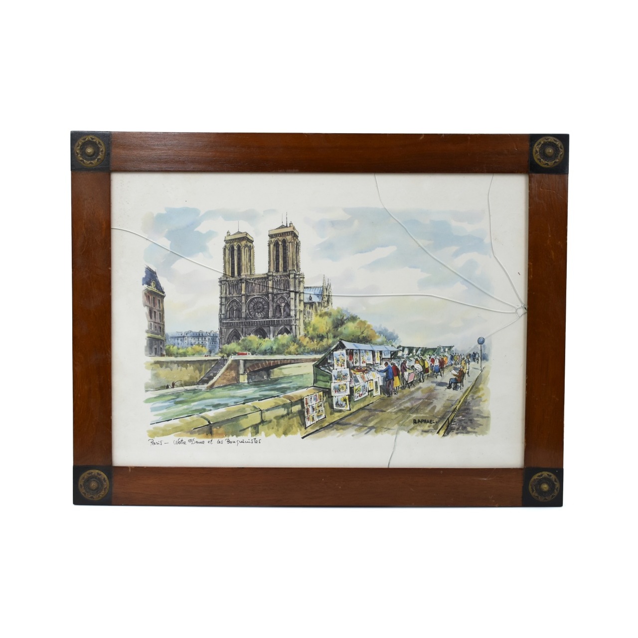 Aguarela e tinta da china sobre papel com tema "Notre Dame- Paris" assinado Raphael com moldura . Vidro Partido
