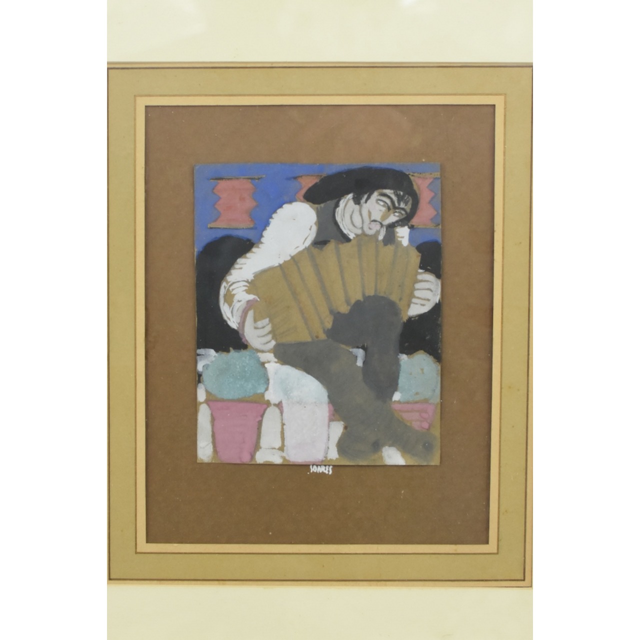 Guache com tema "Figura" de Antonio Soares assinado Soares com moldura