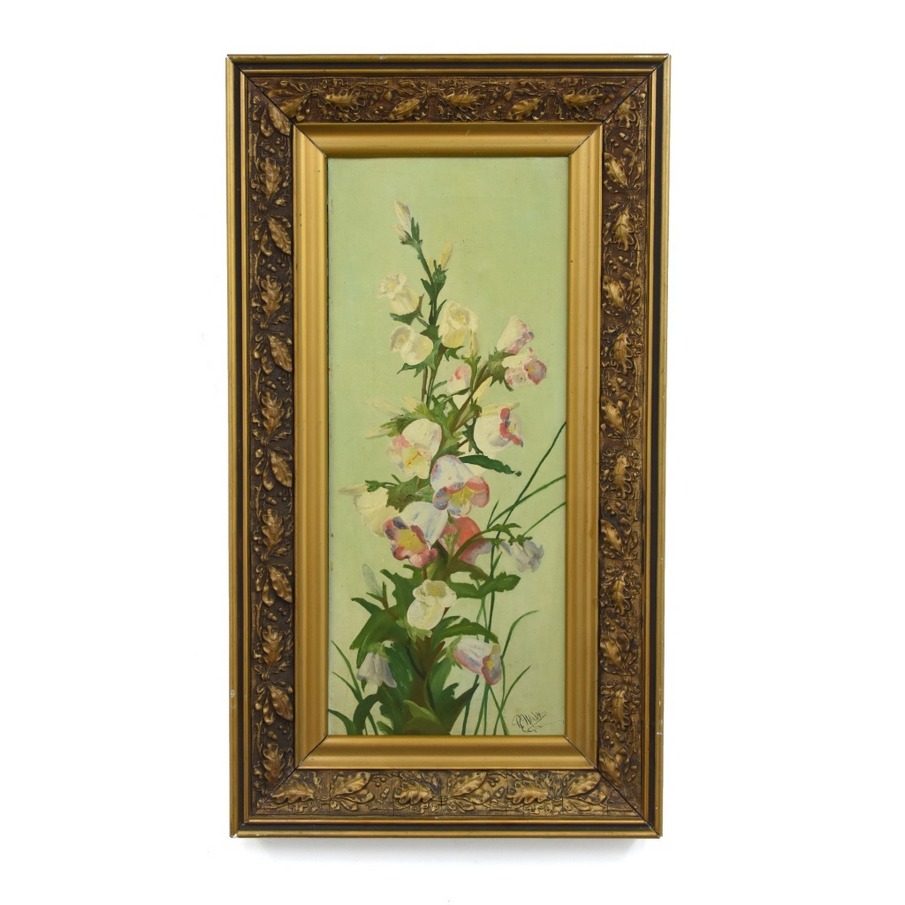 Óleo sobre madeira tema "Flores" assinado com boa moldura antiga