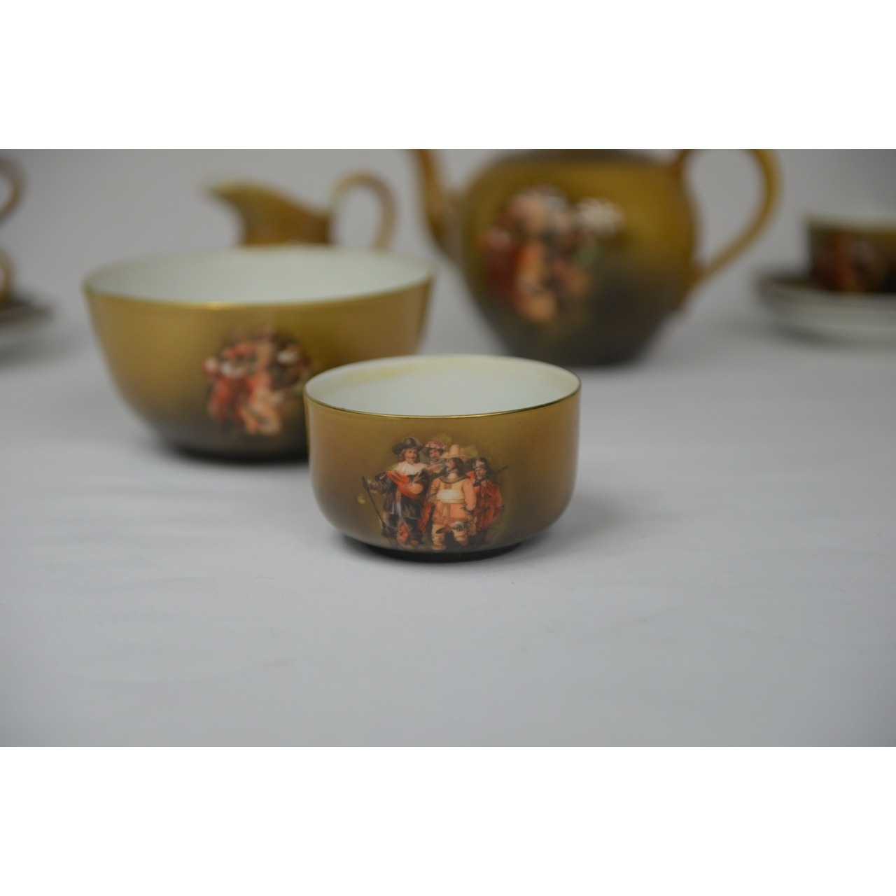 Serviço de chá em porcelana europeia, marca "Reinhold Schlegelmilch". Composto por bule, leiteira, 2 taças, 11 chávenas de chá e respetivos 11 pires.