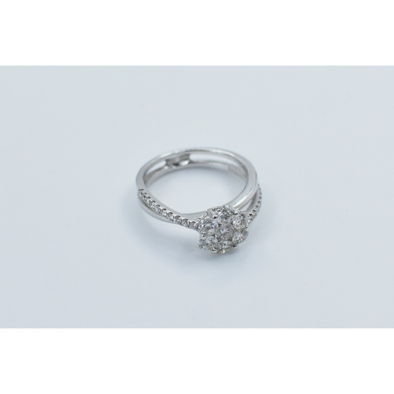 Anel em ouro branco com brilhantes. Peso: 3,7gr