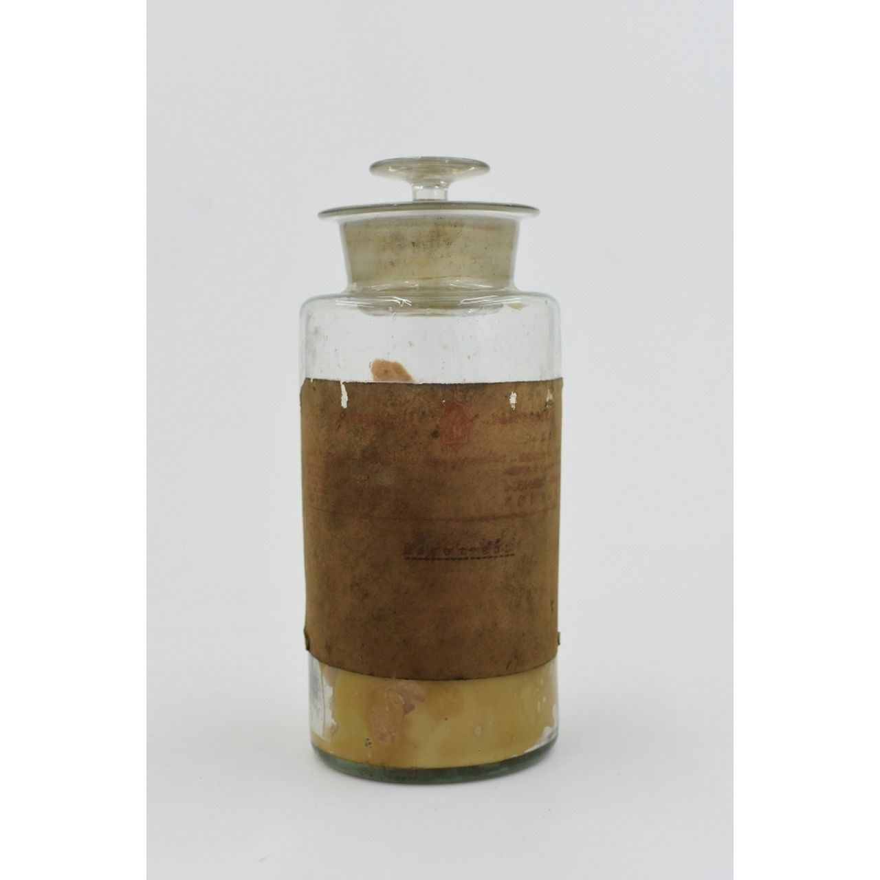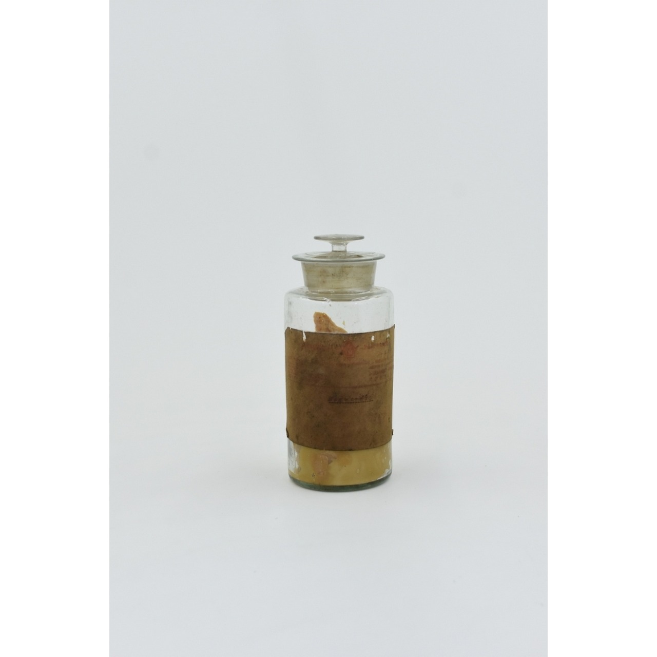 Frasco de farmácia em vidro com rotulo "Fabrica natura"
