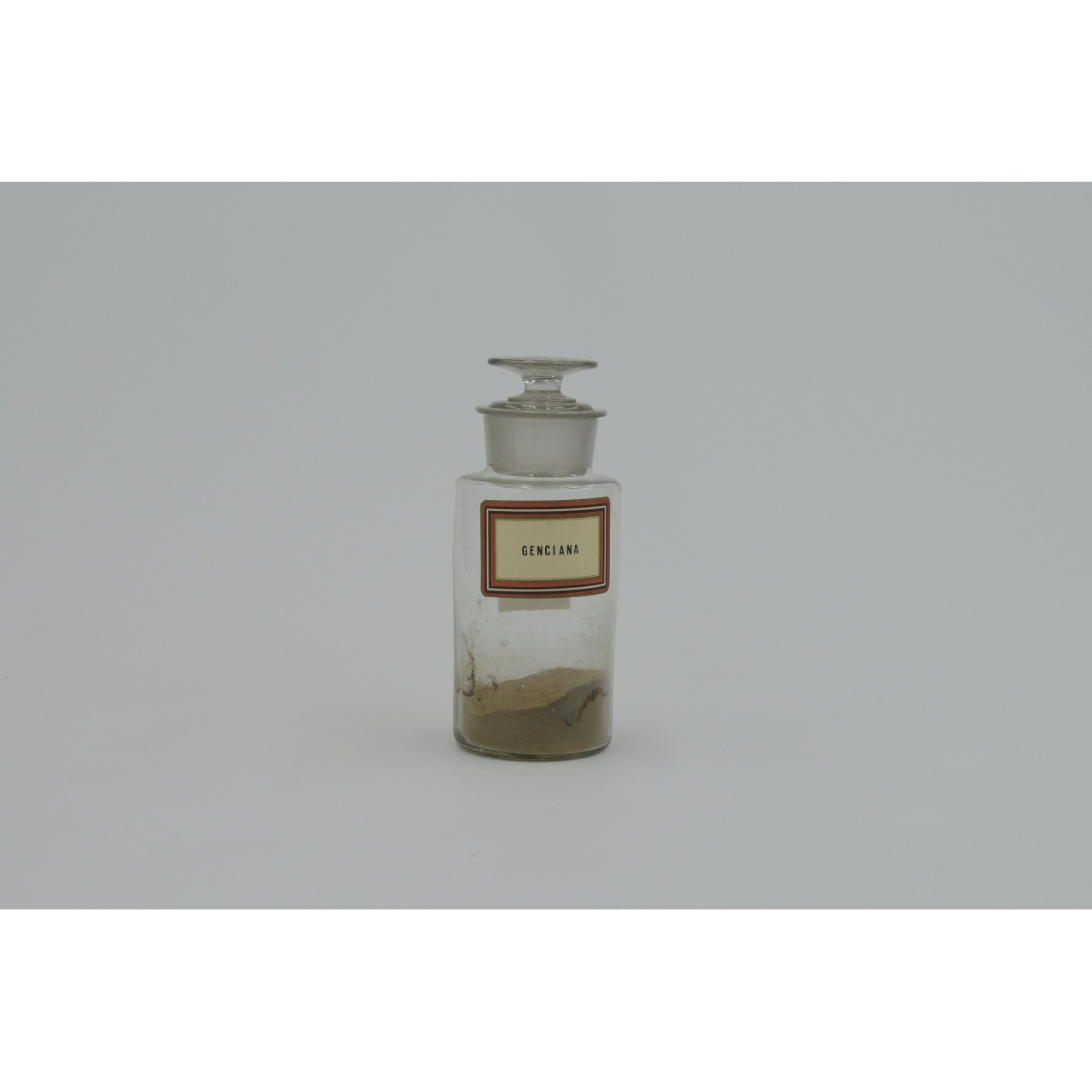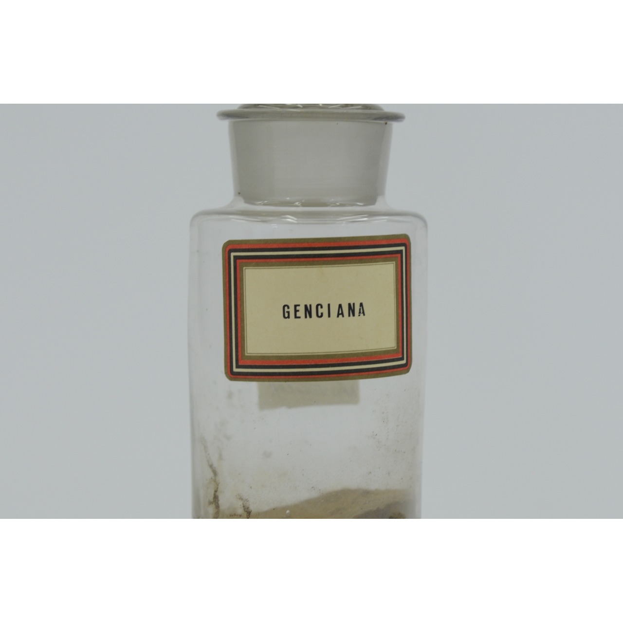 Frasco de farmácia com etiqueta "Genciana"