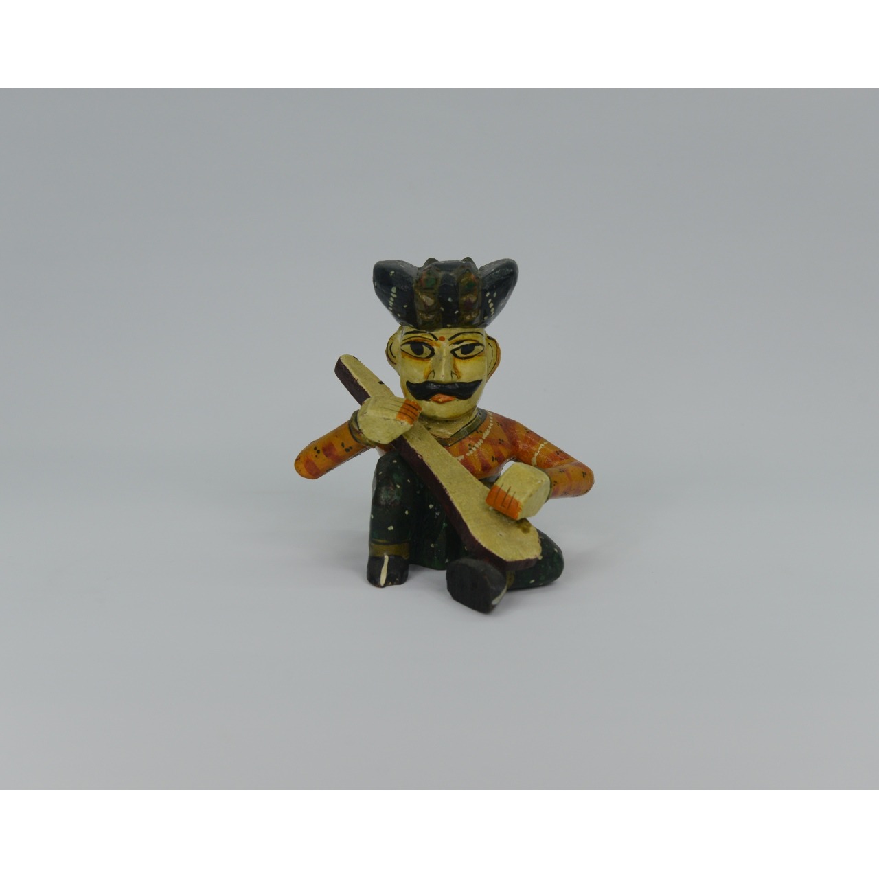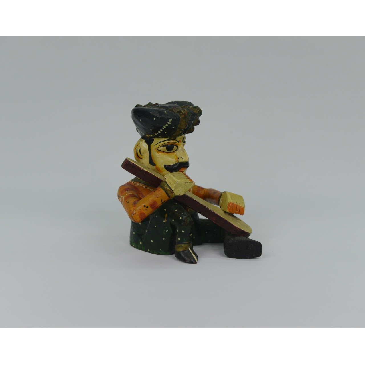 Boneco decorativo em madeira, Músico Indiano