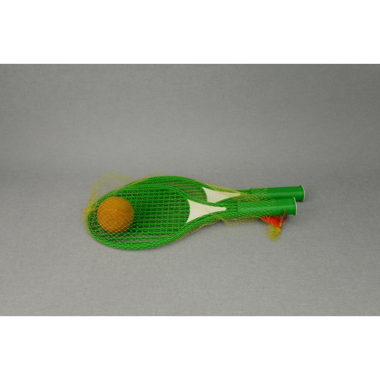 Par de raquetes de praia, plástico verde com bola de espuma