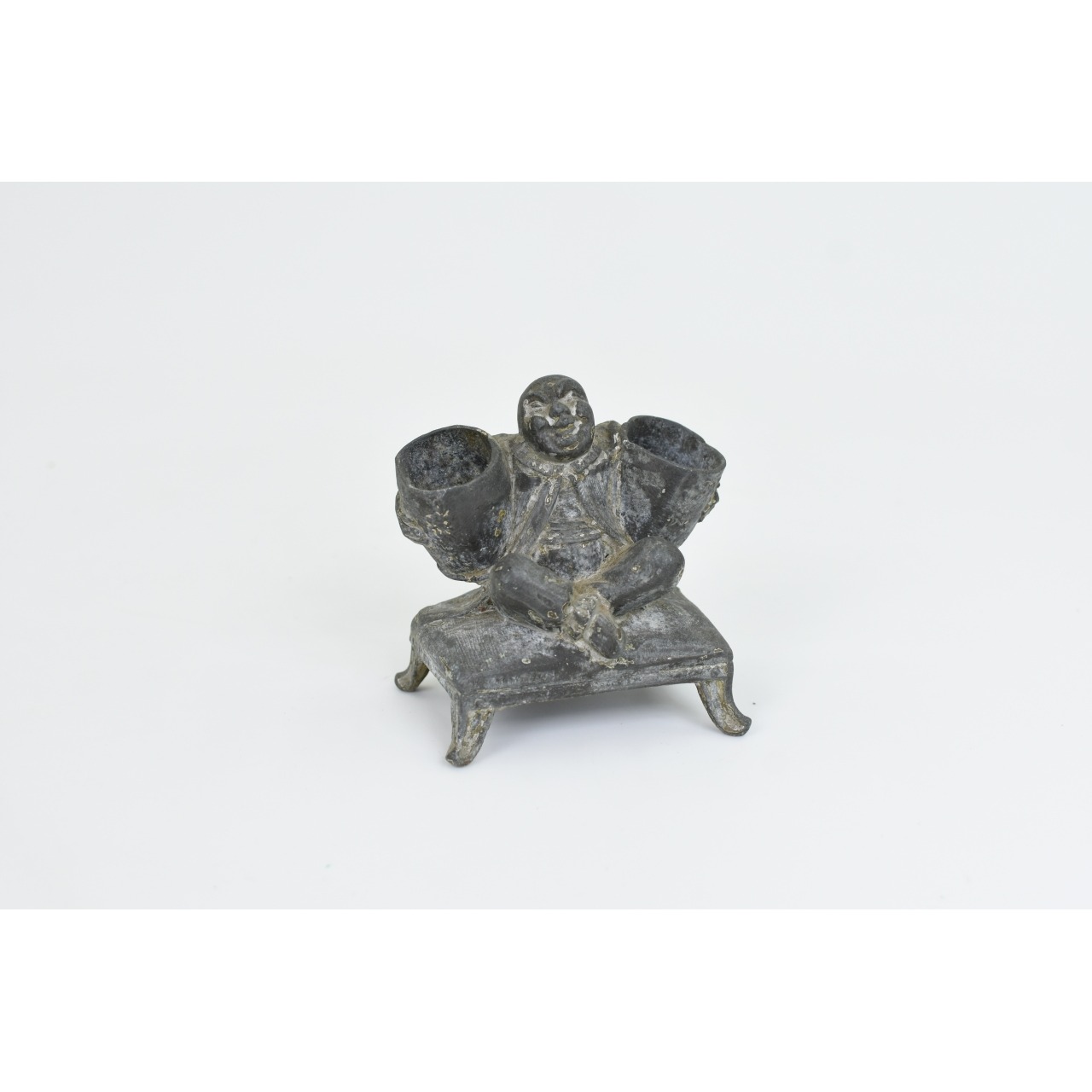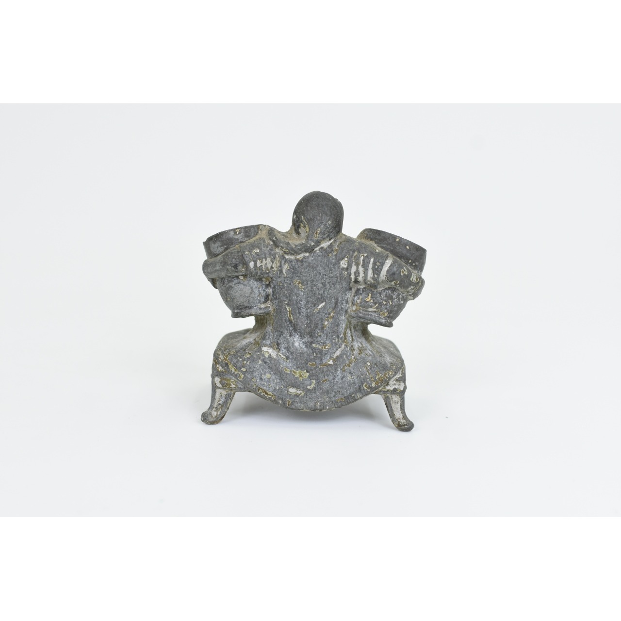 Tinteiro Vintage metálico com forma de homem a segurar duas cestas