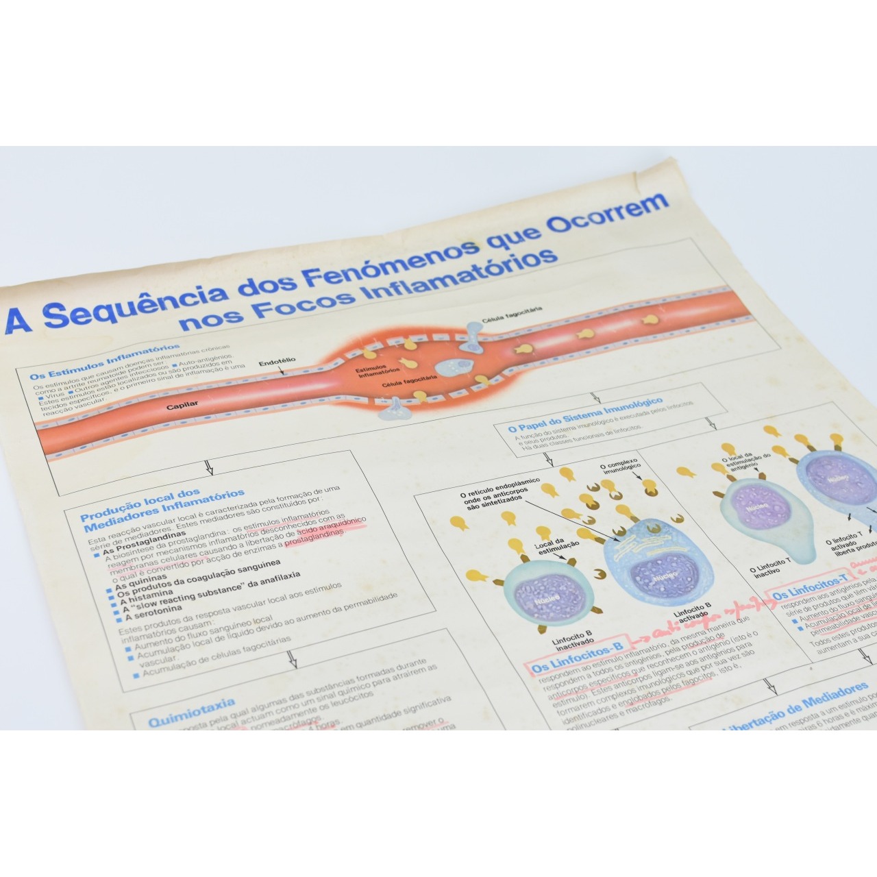 Poster de medicina "A sequência dos focos que ocorrem nos fenómenos inflamatórios" Merck, Sharp & Dohme