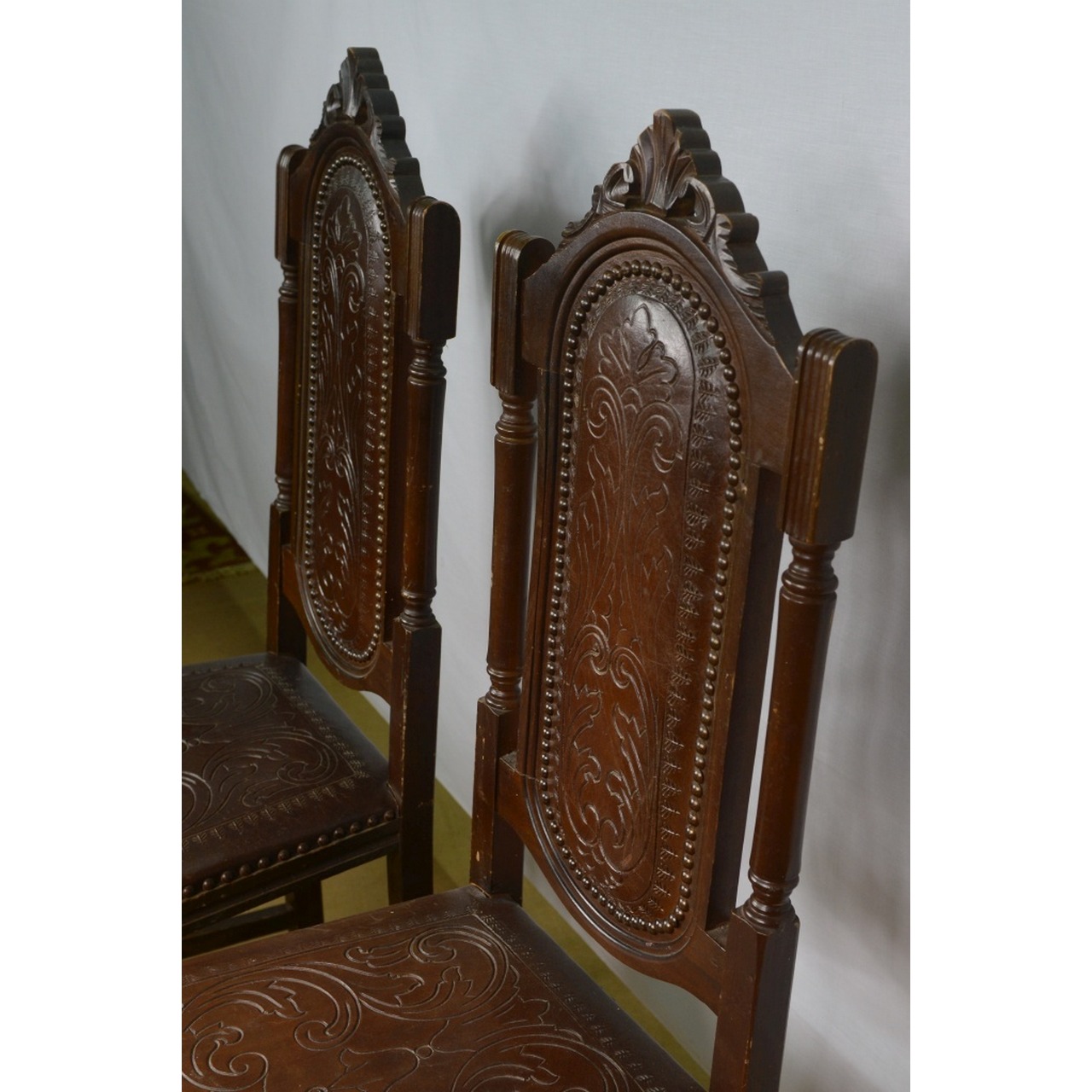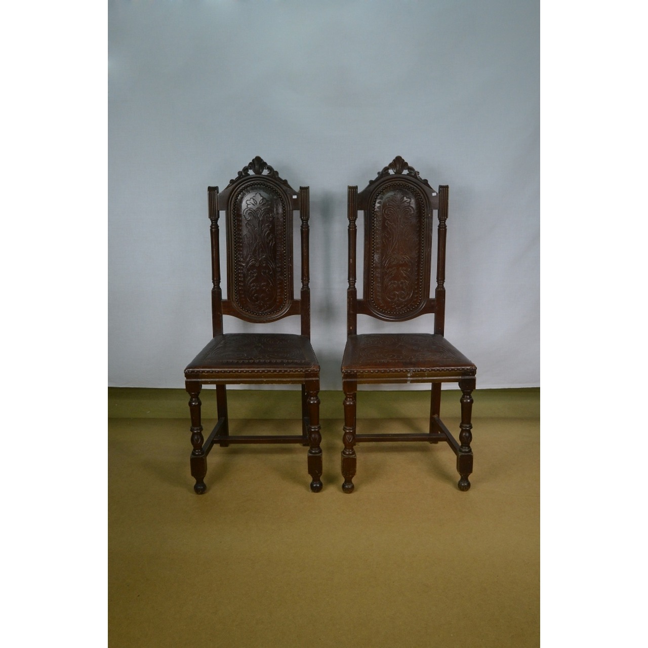 Par de cadeiras, réplicas de modelo antigo do século XVII, em madeira com assento em couro e pregaria