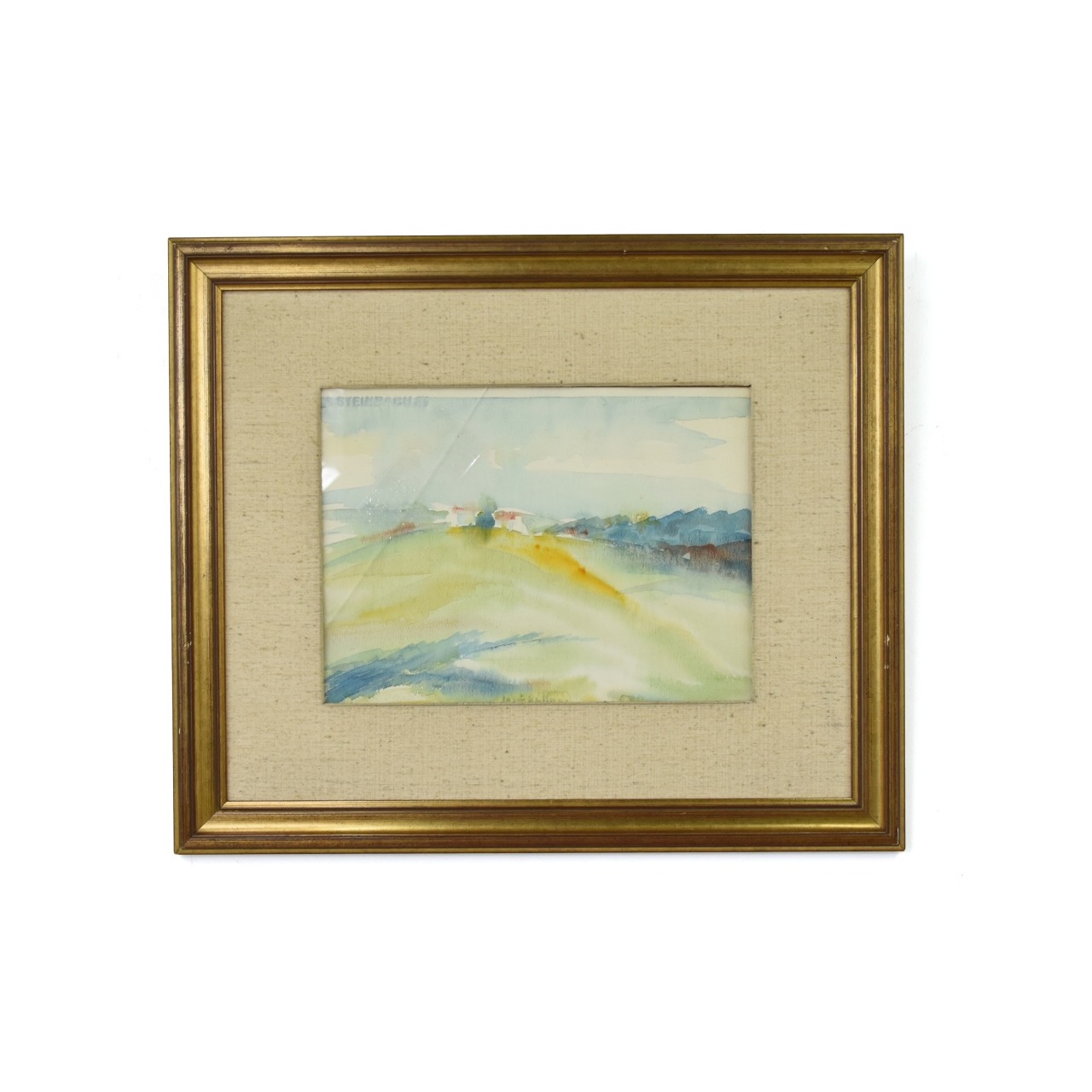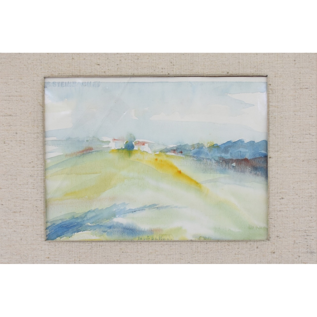 Aguarela sobre papel com tema "Paisagem" assinado com moldura. Vidro partido