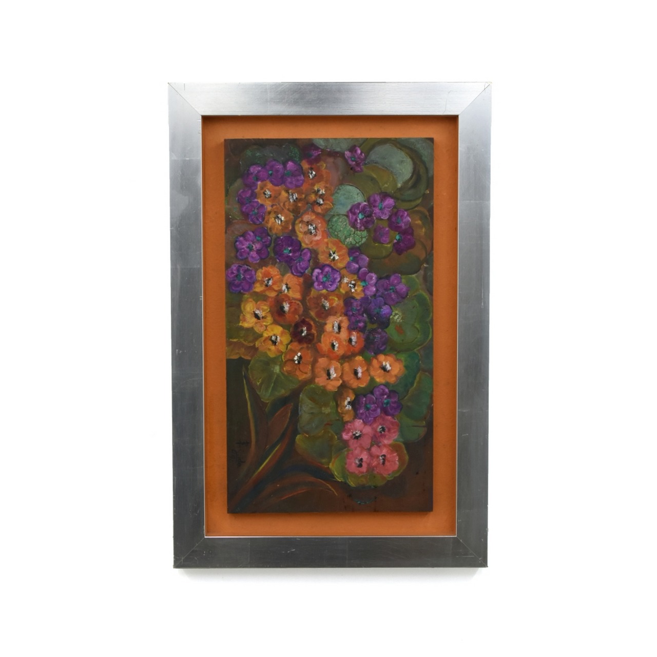 Óleo sobre madeira tema "Flores" assinado Brigida com moldura