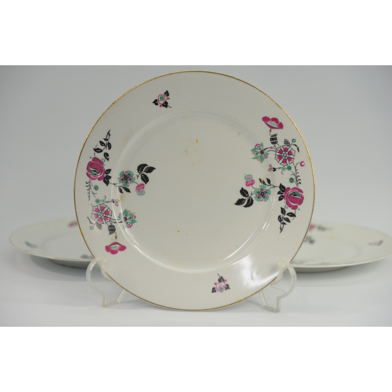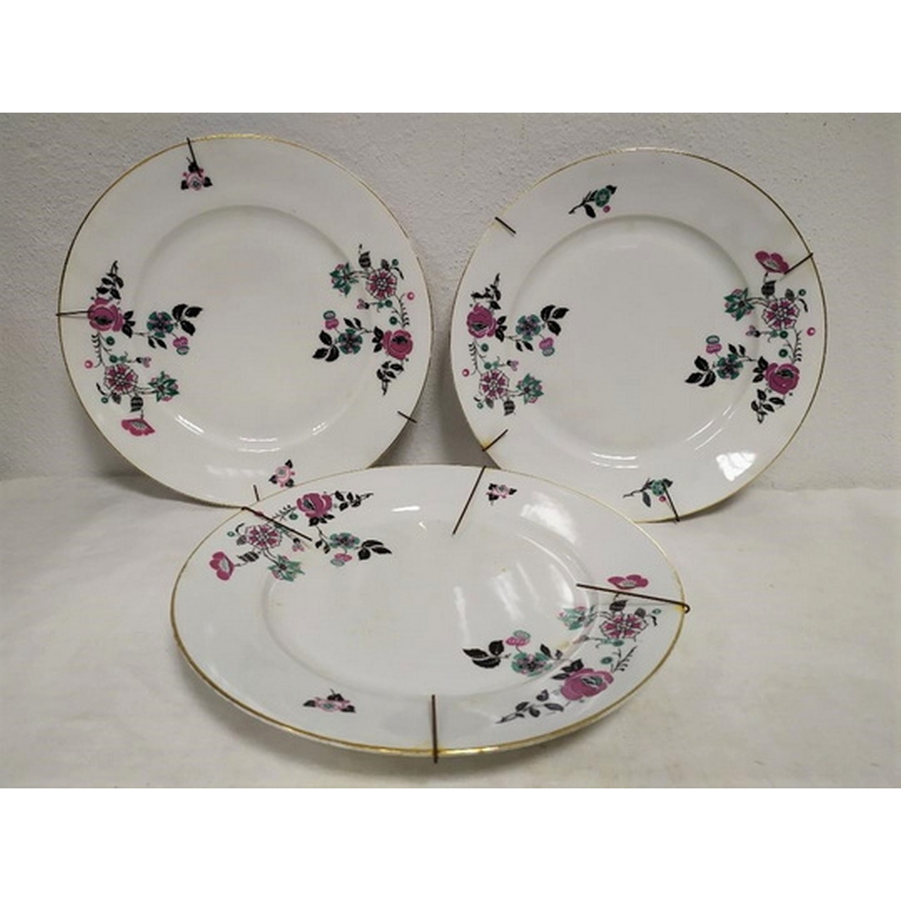 Conjunto de 3 pratos em porcelana europeia, marcados "Union T, Made in Czeche-Slovakie". Princípio do século XX